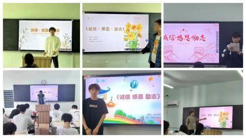 活动期间65个小班组织开展《诚信·感恩·励志》为主题的课前五分钟演讲,通过将学生资助工作与校园文化品牌相融合,通过校园文化渲染,提高全体学生思想道德素质、诚信感恩意识和社会责任感,强化资助工作育人实效。