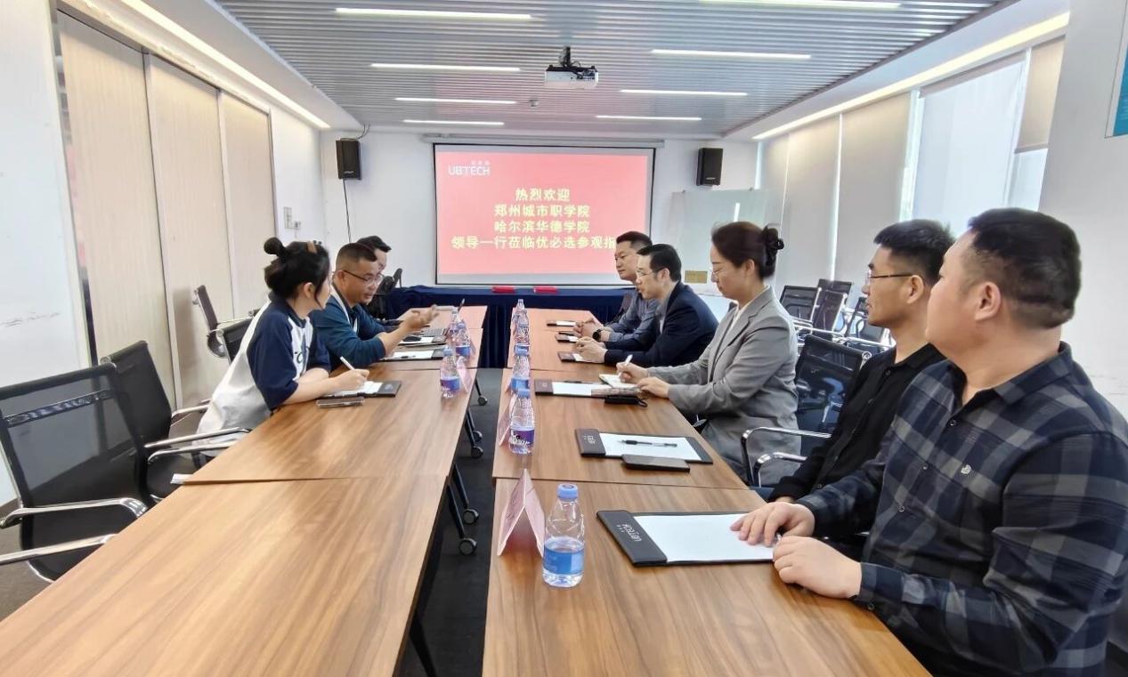 副校长魏可霏带队走访深圳市优必选科技股份有限公司时,朱院长、毕经毅主任全程参与交流,与企业教育总监伍平就人形机器人技术研发、人才实践能力培育、实习实训基地建设等关键议题深入磋商,结合学院学生培养特点,明确了实习实训内容、定向输送标准等合作细节,为学院实践教学体系完善、学生核心竞争力提升敲定具体合作方向。